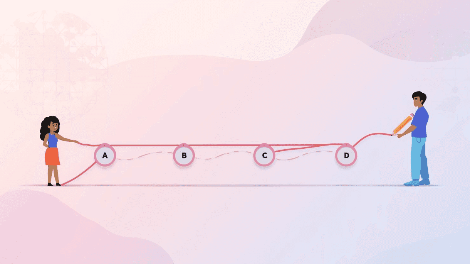 Indirect causes work through intermediate steps. One event triggers another, and that second event creates the final result. This makes the chain longer but still meaningful.