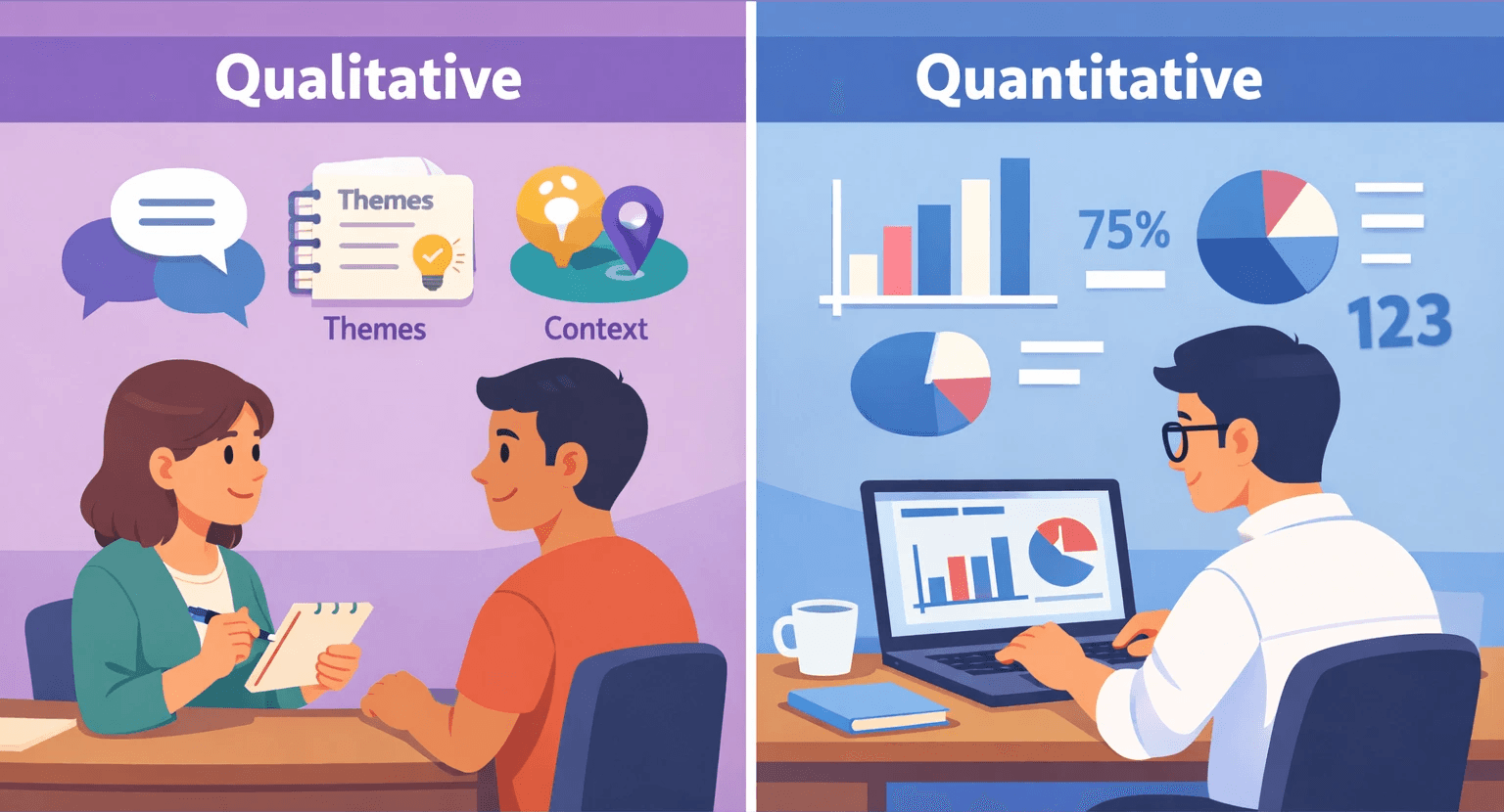 Qualitative and quantitative research are two different paths to building knowledge. One gives you deep, contextual understanding from words and observations. The other provides objective, measurable results from numbers and statistics.