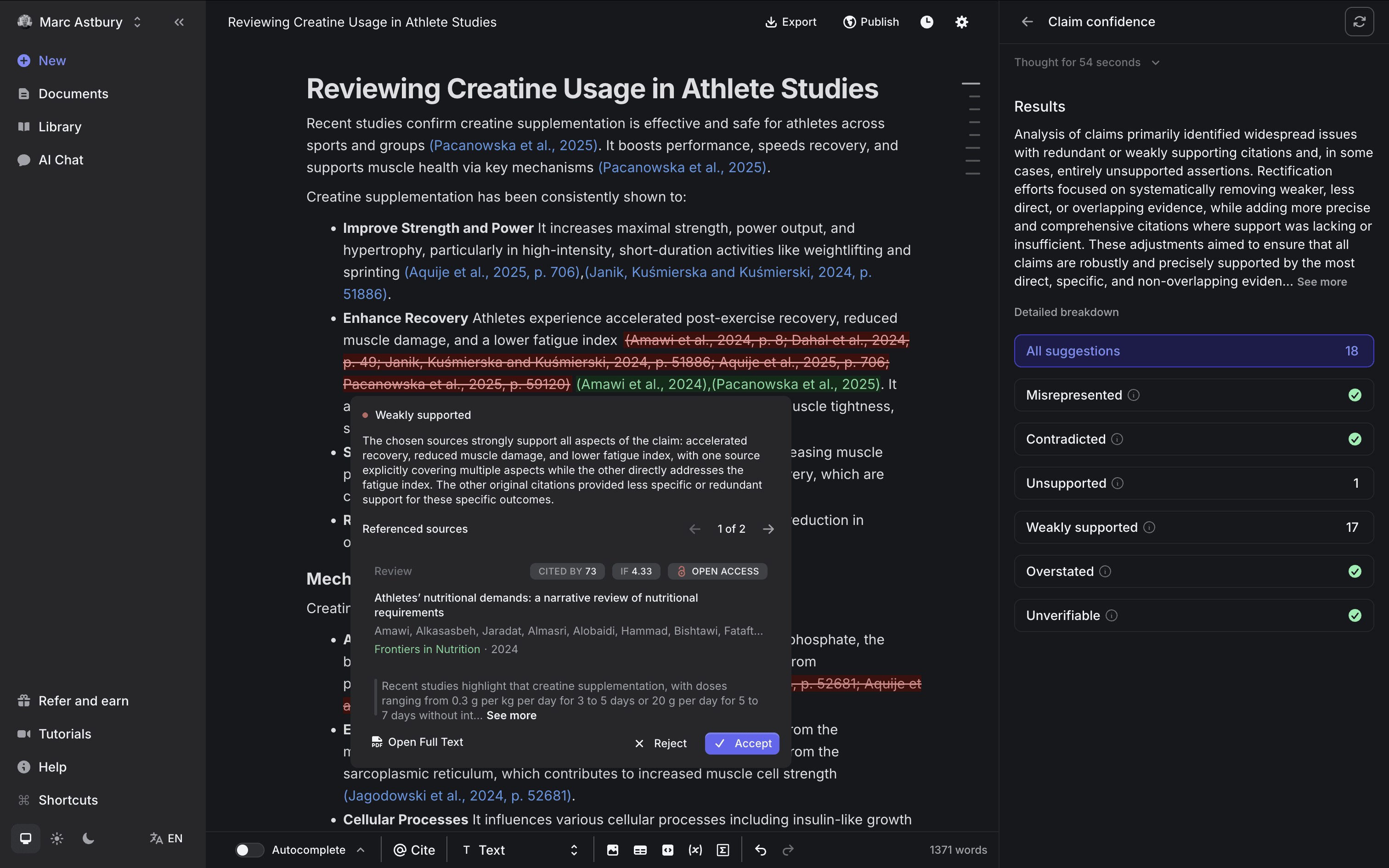Évitez les citations inventées et les affirmations non fondées. Soumettez ou publiez en toute confiance, en sachant que vos affirmations représentent fidèlement la littérature.