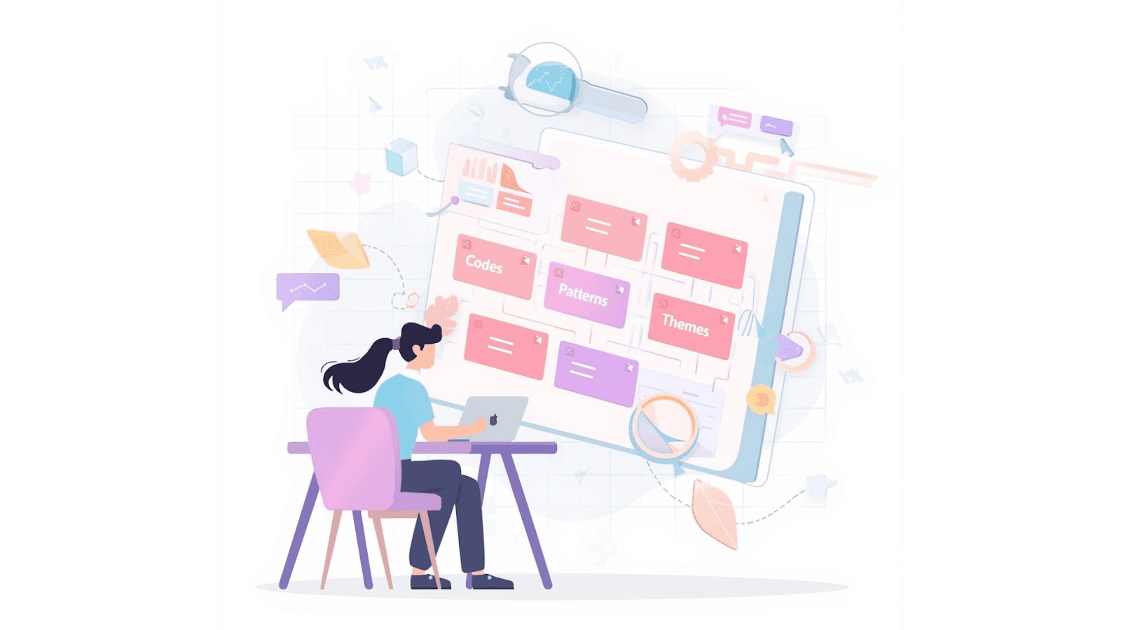 In thematic analysis, you are not just summarizing what people said. Instead, you are looking for repeated ideas or meanings that matter for your research question. These patterns are condensed into themes that capture something important about the data. For example, if you interview students about online learning, you might find themes like “flexibility,” “technical challenges,” or “feeling isolated.”