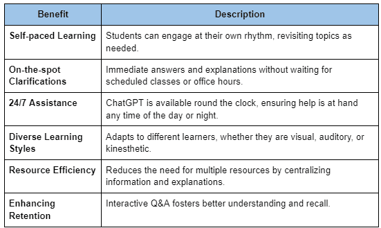 O ChatGPT pode fornecer esclarecimentos e explicações para uma variedade de assuntos, permitindo que os alunos superem obstáculos em suas tarefas.